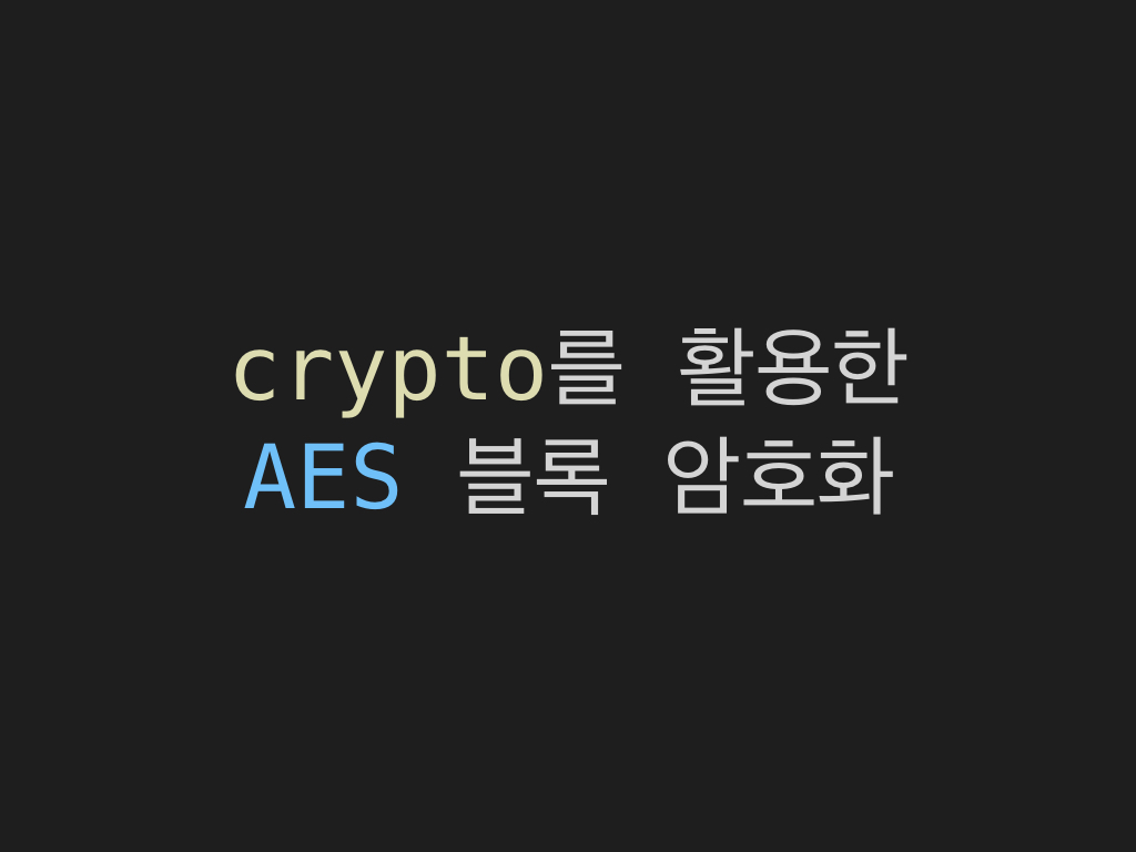 사용자의 민감한 정보를 처리하기 위해 암호화를 할 필요가 생겼다. 이 정보는 블록암호화 처리를 해야한다고 한다. 가비아 게시물 참고 블록암호가 뭐지... 블록체인 같은 개념인건가... 어렵게 생각했는데 crypto 라이브러리를 통해 AES 암호화 알고리즘을 사용하면 쉽게 처리할 수 있었다. AES는 미국 정부가 채택한 이후 전 세계적으로 널리 사용되고 있다. 암호화, 복호화 시에 같은 키를 사용하는 대칭 키 알고리즘이다. 위키피디아 AES 참고 crypto.createCipheriv(algorithm, key, iv, [options]) -> cipher 인자1 algorithm: 사용할 cipher algorithm 다음 명령어를 통해 목록을 조회해볼 수 있다. openssl list -cipher-a..